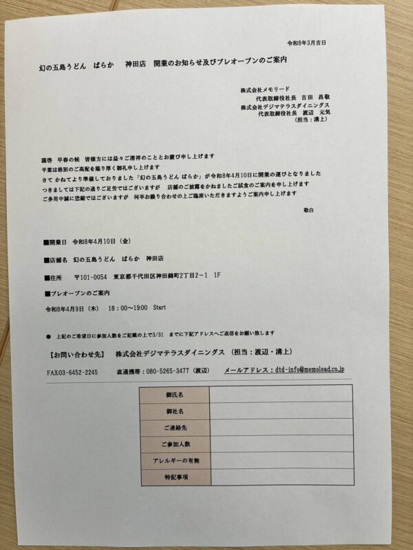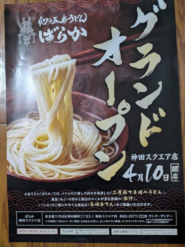 4月10日に長崎の五島うどん ≪ばらか≫ が神田にオープンするとの事で、9日の夜、プレオープンにお呼ばれされてきました♪